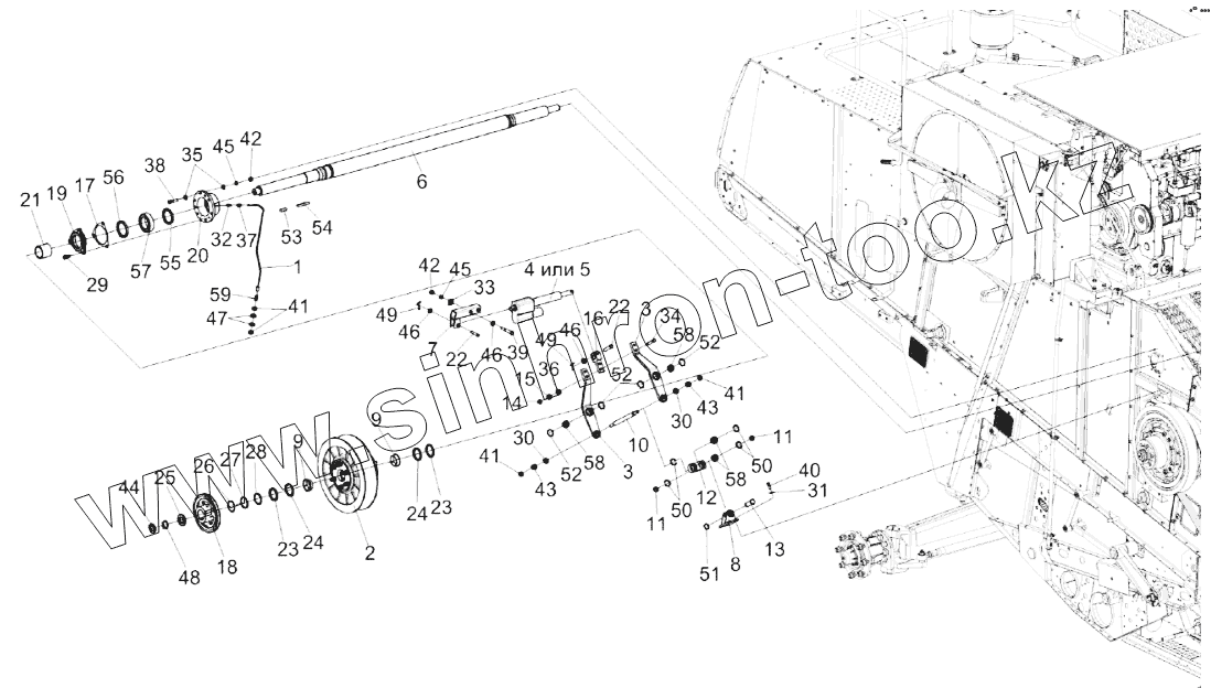 Каталог запасных частей к технике: Гомсельмаш КЗС-1624-1. Очистка. Установка вариатора КЗК-1420-0108010