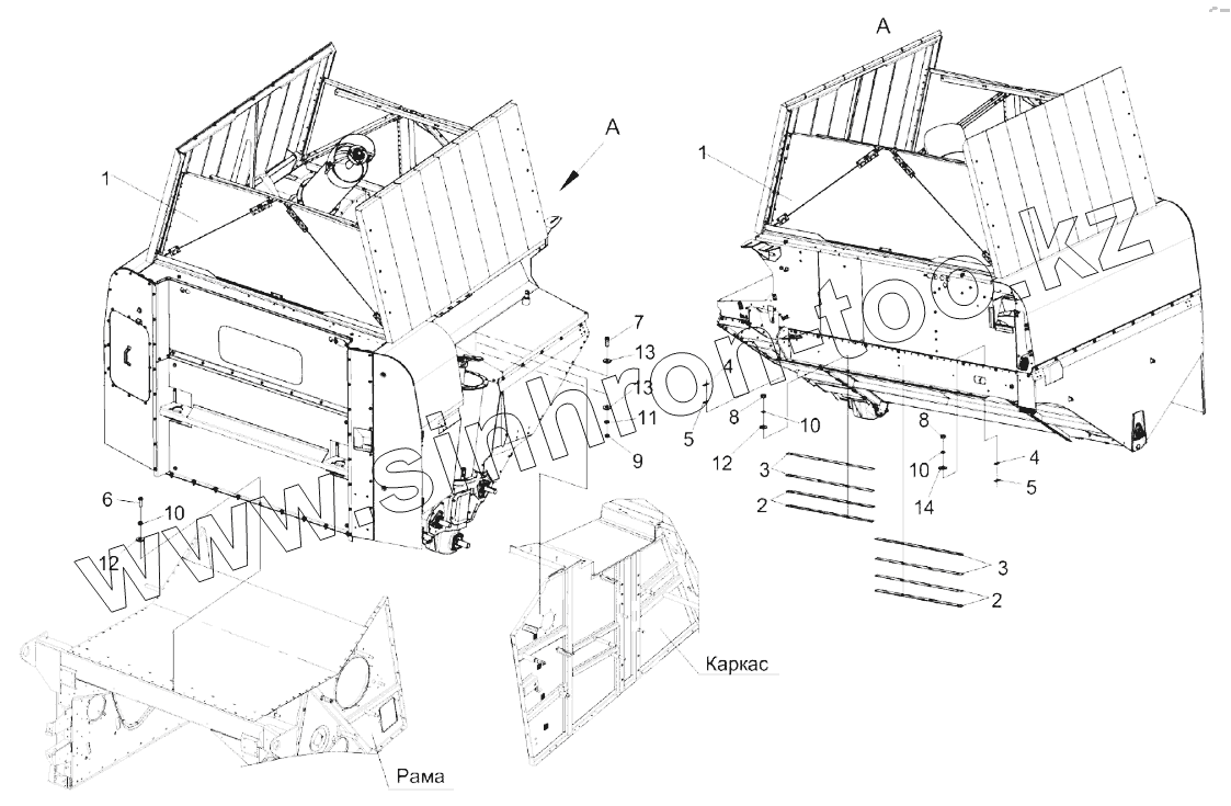 Каталог запасных частей к технике: Гомсельмаш КЗС-1624-1. Установка бункера КЗК-16-1-0203000