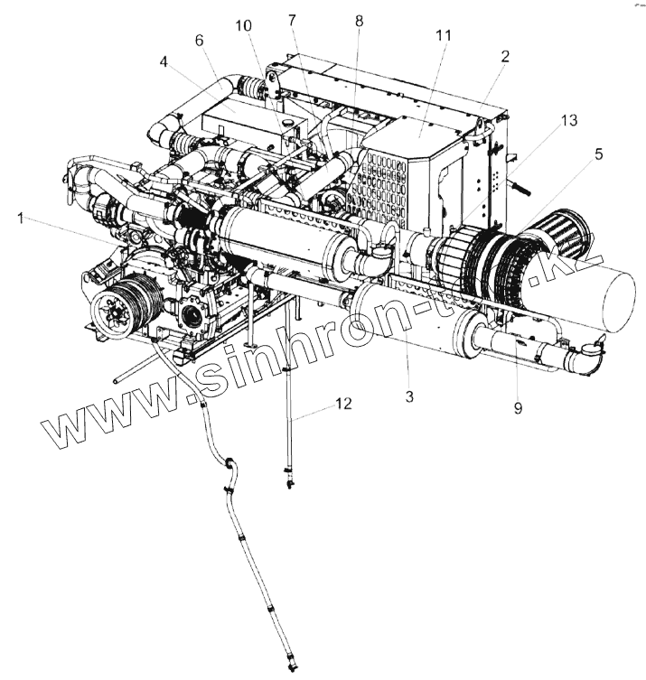 Каталог запасных частей к технике: Гомсельмаш КЗС-1624-1. Установка двигателя КЗК-16-1-0106000
