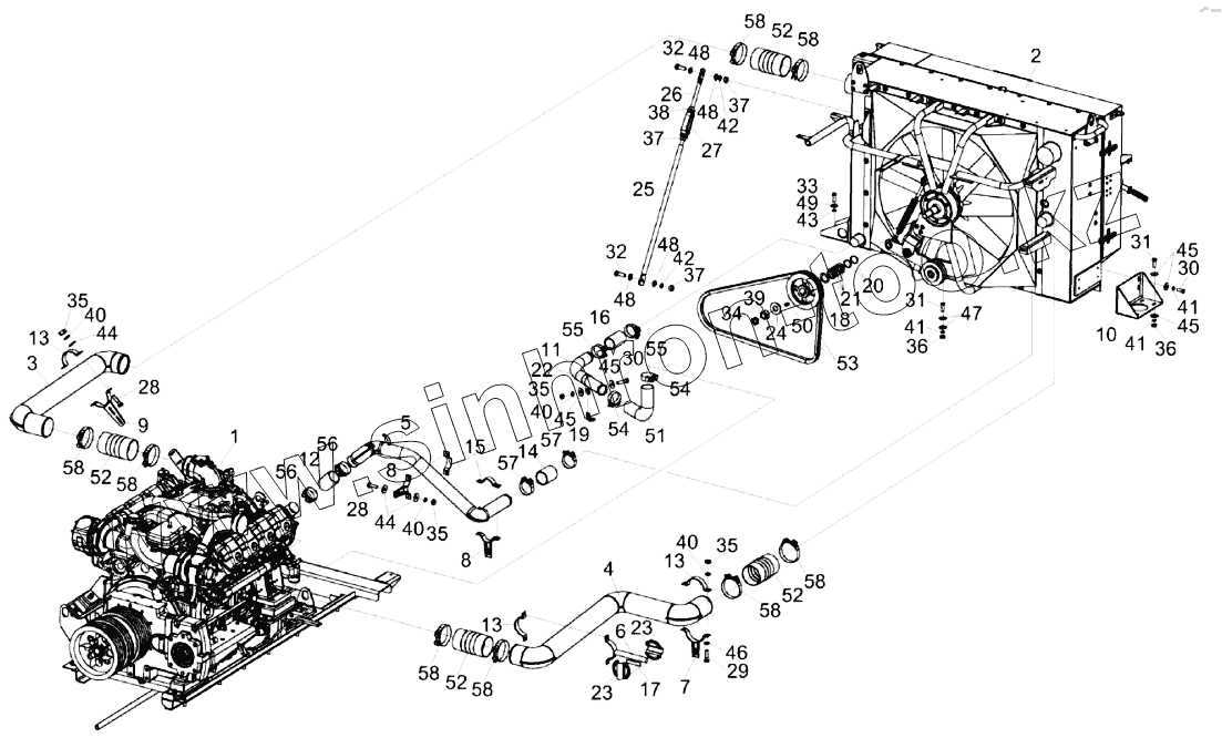 Каталог запасных частей к технике: Гомсельмаш КЗС-1624-1. Установка двигателя КЗК-16-1-0106000