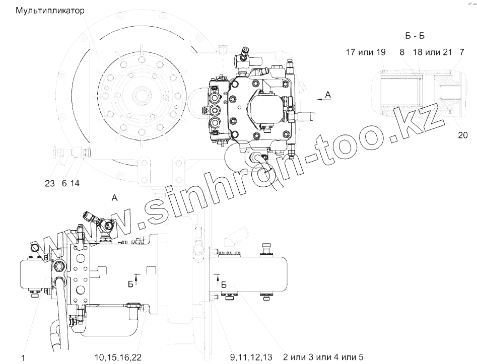 Каталог запасных частей к технике: Гомсельмаш КЗС-1624-1. Установка гидронасосов КЗК-16-1-0100200