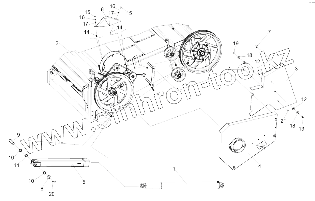 Схема приводов комбайна КЗС-1624-1 (вид справа)