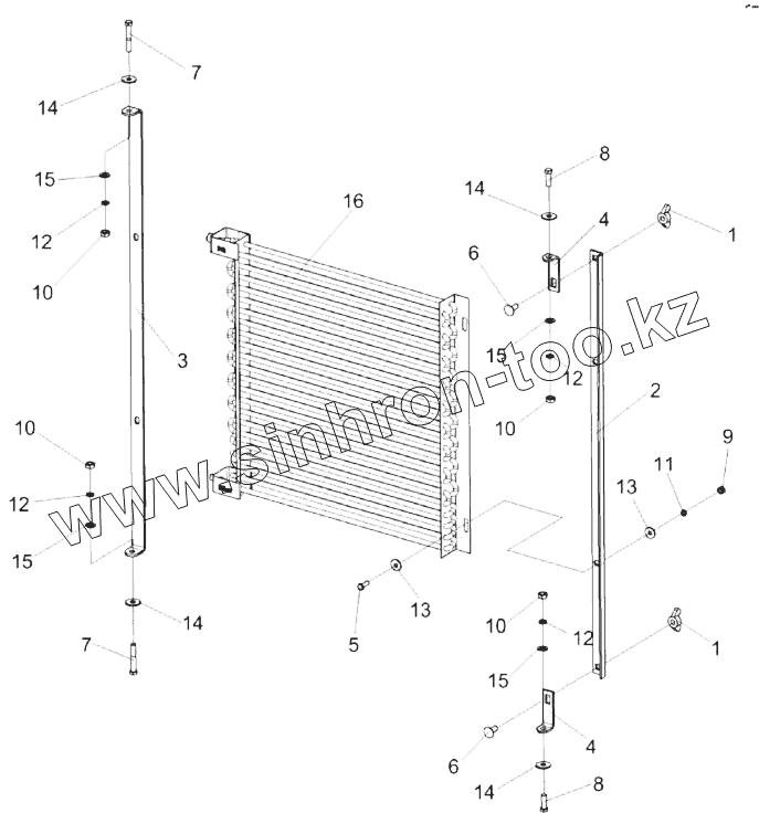 Каталог запасных частей к технике: Гомсельмаш КЗС-1624-1. Установка конденсатора КЗК-16-1-0113050