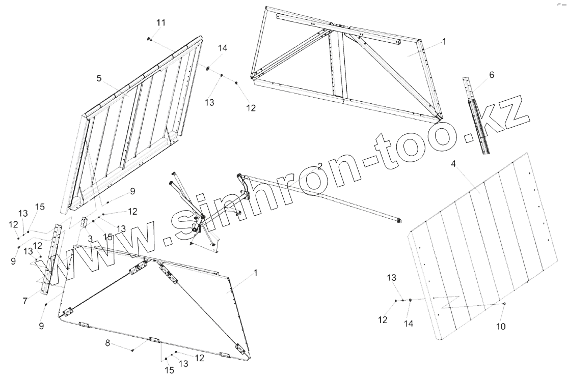 Каталог запасных частей к технике: Гомсельмаш КЗС-1624-1. Установка крыши бункера КЗК-14-0204000Б