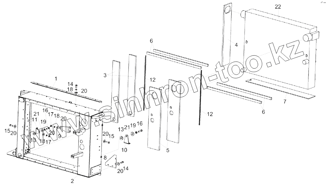 Каталог запасных частей к технике: Гомсельмаш КЗС-1624-1. Установка радиатора КЗК-16-1-0106050