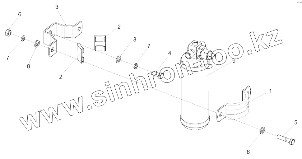 Каталог запасных частей к технике: Гомсельмаш КЗС-1624-1. Установка ресивера КЗК-8-3-0113050