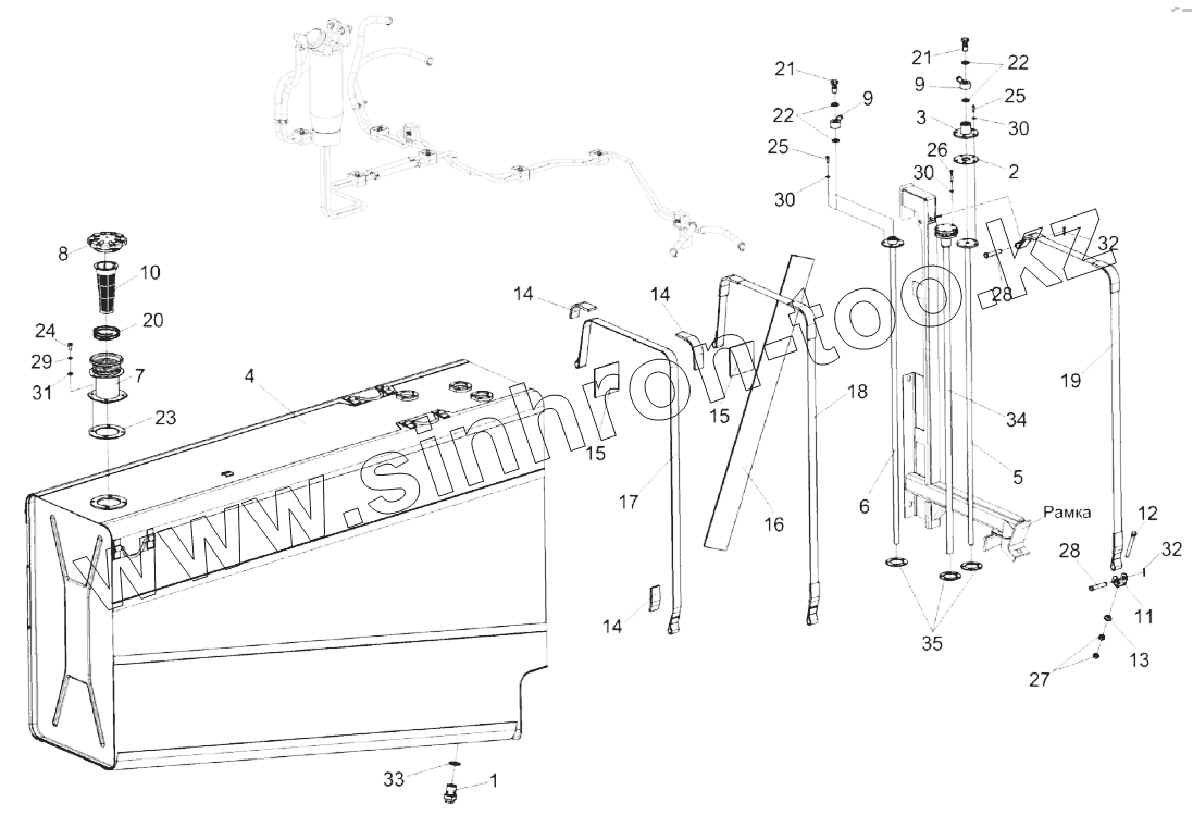 Каталог запасных частей к технике: Гомсельмаш КЗС-1624-1. Установка топливной системы КЗК-16-1-0126000