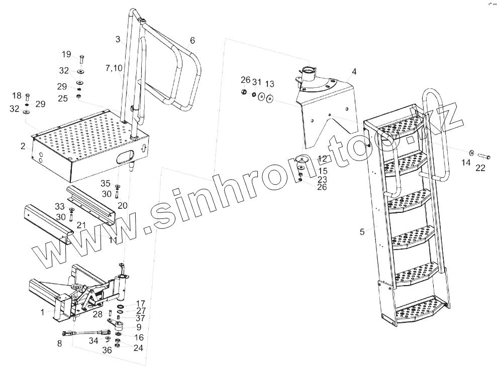 Каталог запасных частей к технике: Гомсельмаш КЗС-1624-1. Установка трапа КЗК-14-0117000А