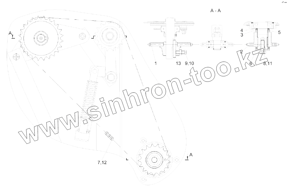 Каталог запасных частей к технике: Гомсельмаш КЗС-1624-1. Установка цепной передачи КЗК-14-0214500Б