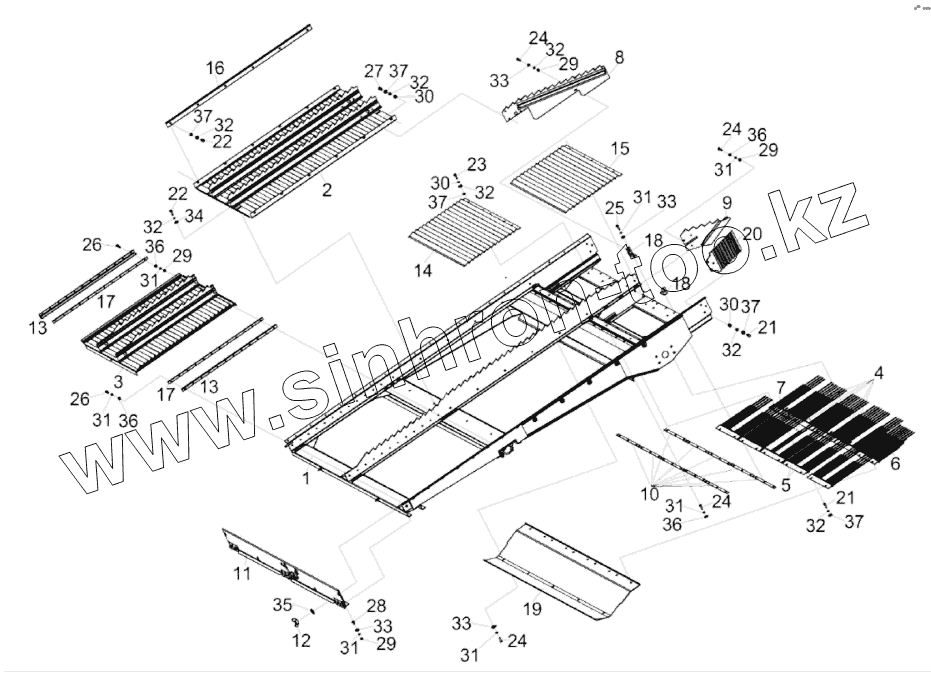 Каталог запасных частей к технике: Гомсельмаш КЗС-1624-1. Доска стрясная КЗК-14-0280000