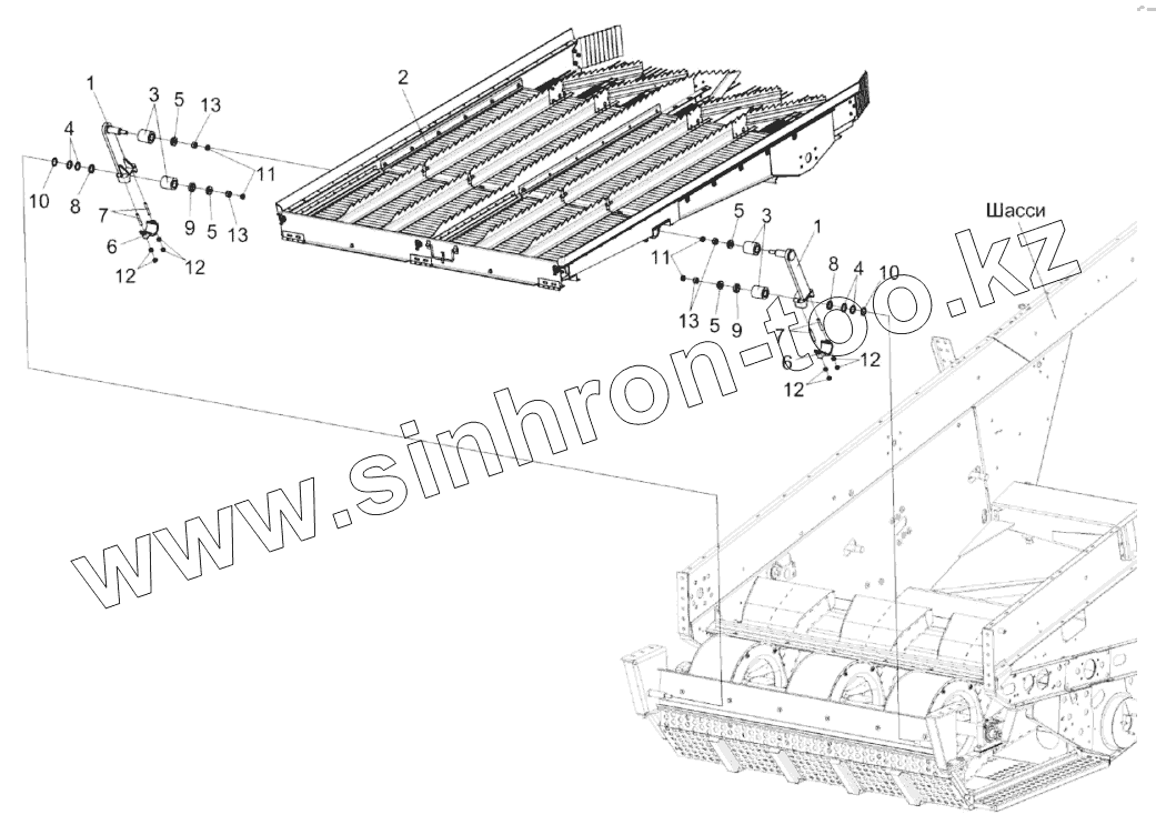 Каталог запасных частей к технике: Гомсельмаш КЗС-1624-1. Очистка. Установка доски стрясной КЗК-14-0280000