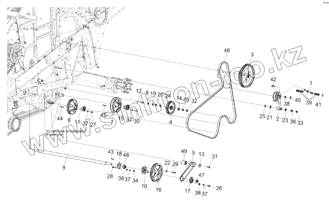 Каталог запасных частей к технике: Гомсельмаш КЗС-1624-1. Очистка. Установка шкива обводного КЗК-14-0202190