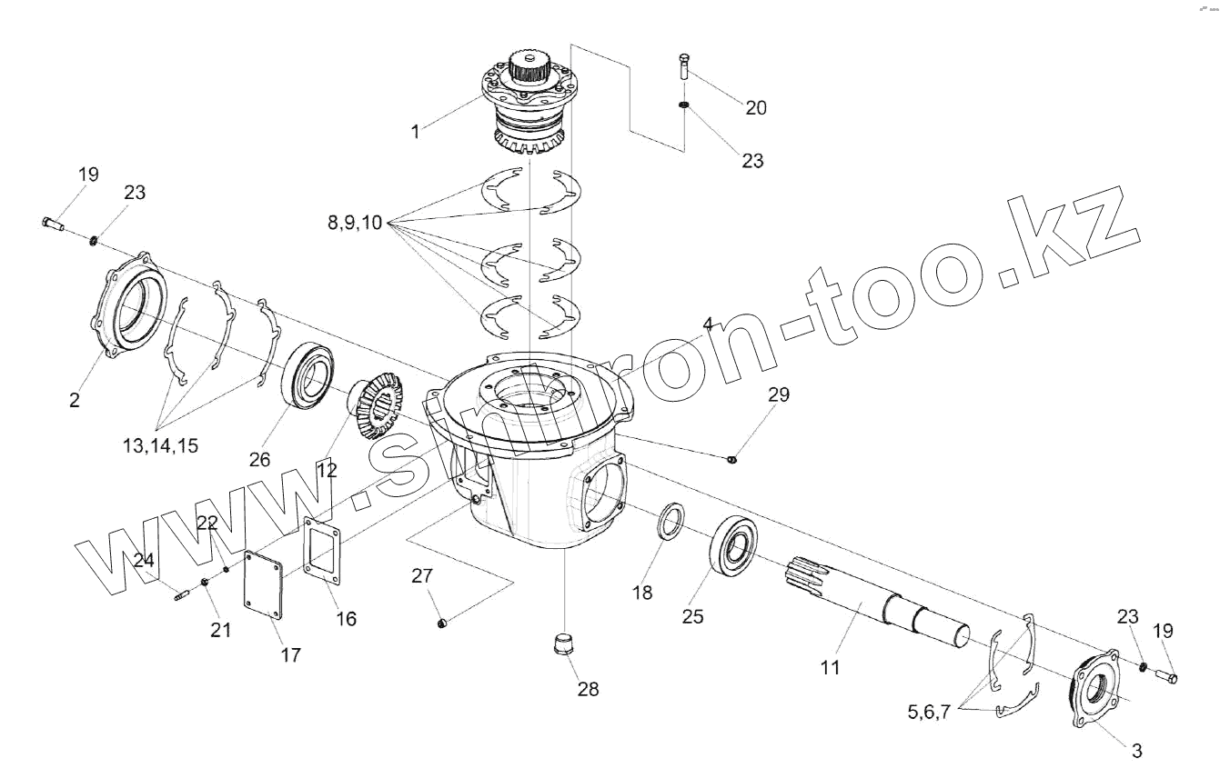 Каталог запасных частей к технике: Гомсельмаш КЗС-1624-1. Редуктор КЗК-14-0209000