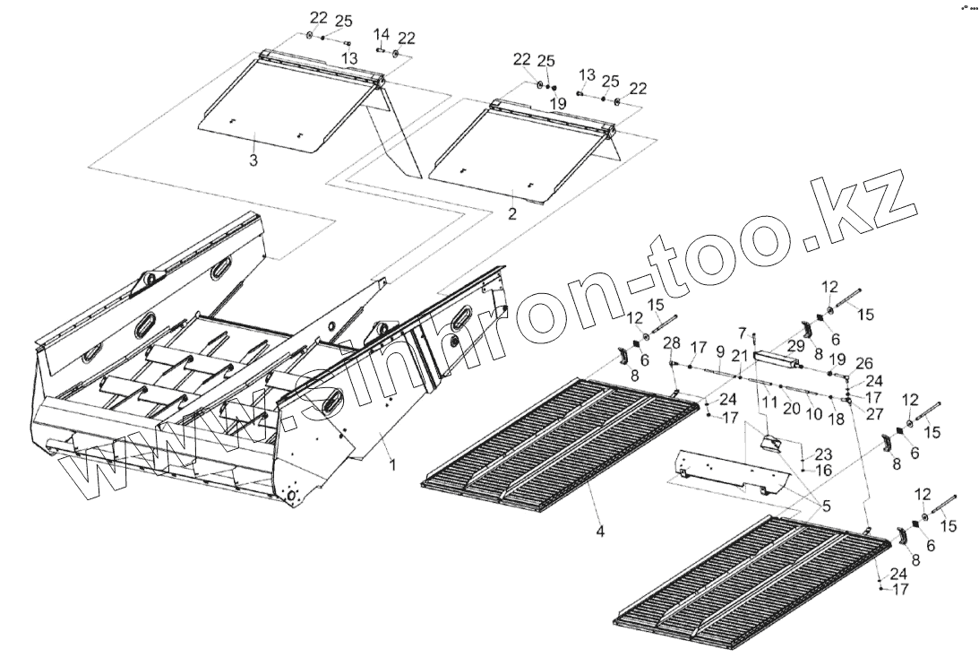 Каталог запасных частей к технике: Гомсельмаш КЗС-1624-1. Стан решетный нижний КЗК-14-0240000А