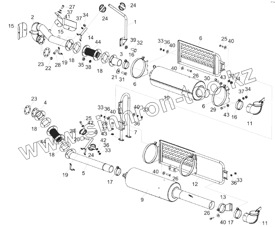 Каталог запасных частей к технике: Гомсельмаш КЗС-1624-1. Установка глушителя КЗК-16-1-0106060
