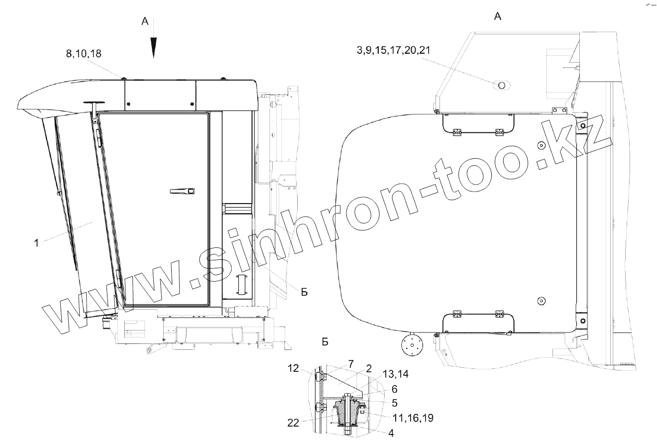 Каталог запасных частей к технике: Гомсельмаш КЗС-1624-1. Установка кабины КЗК-14-0120000-01