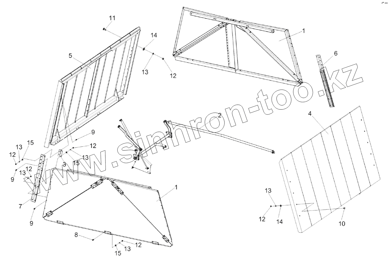 Каталог запасных частей к технике: Гомсельмаш КЗС-1624-1. Установка крыши бункера КЗК-14-0204000Б