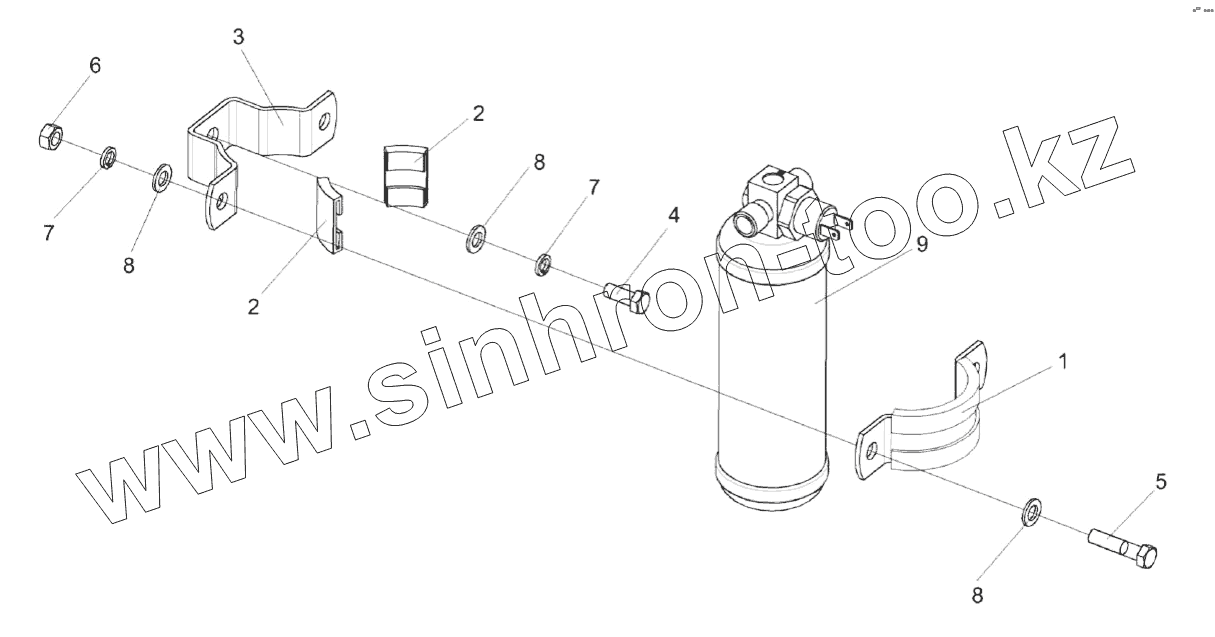 Каталог запасных частей к технике: Гомсельмаш КЗС-1624-1. Установка ресивера КЗК-8-3-0113050