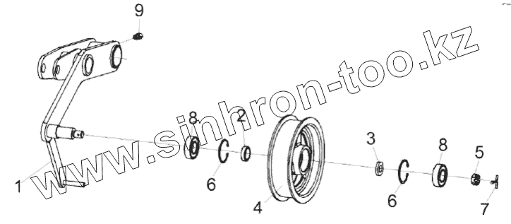Каталог запасных частей к технике: Гомсельмаш КЗС-1624-1. Устройство натяжное КЗК-14-0221100А