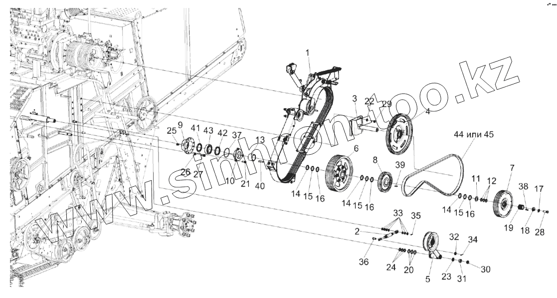 Каталог запасных частей к технике: Гомсельмаш КЗС-2124КР. Очистка. Установка привода главного контрпривода КЗК-2124-0220000