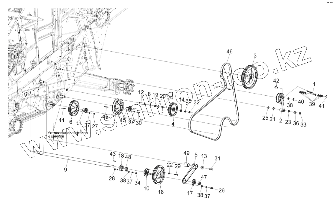 Каталог запасных частей к технике: Гомсельмаш КЗС-2124КР. Очистка. Установка шкива обводного КЗК-14-0202190