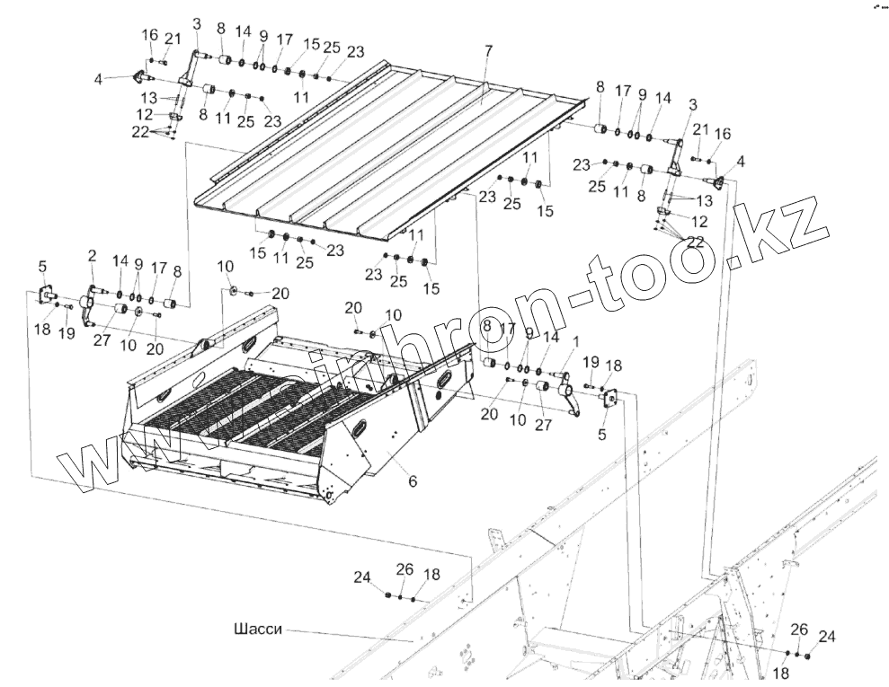 Каталог запасных частей к технике: Гомсельмаш КЗС-2124КР. Очистка. Установка стана решетного нижнего КЗК-14-0240000А