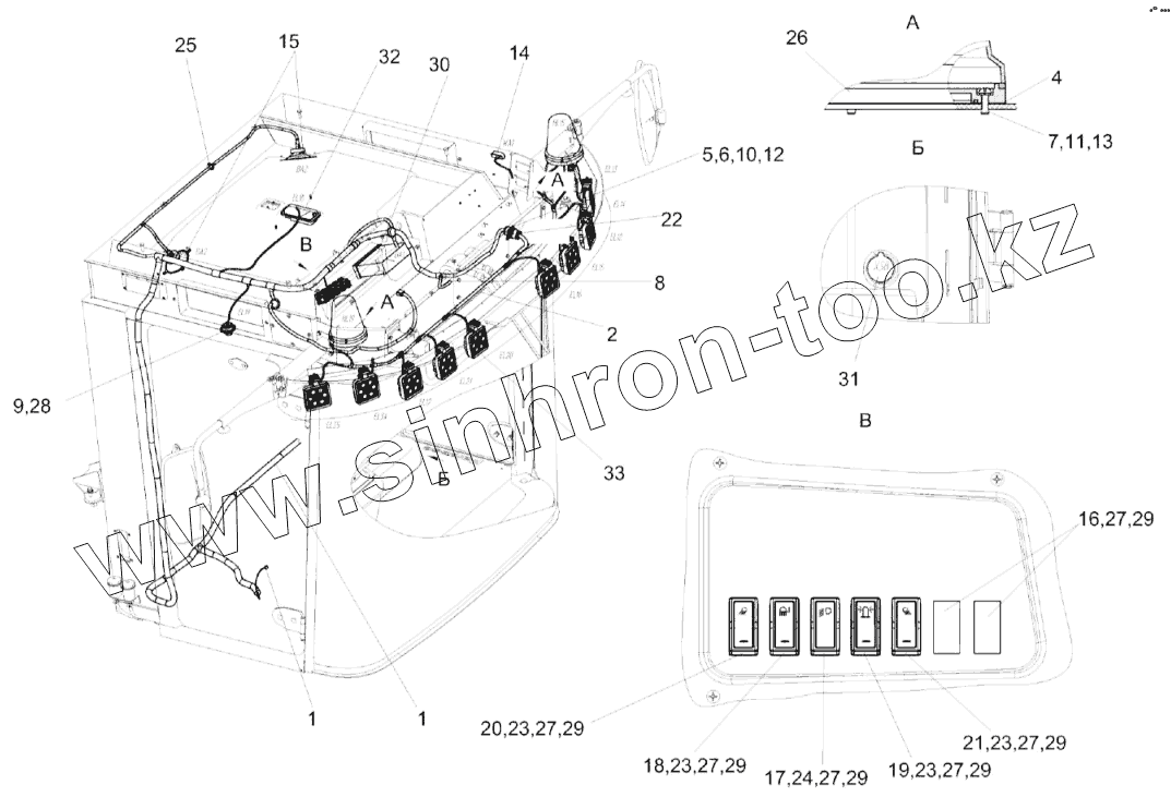 Каталог запасных частей к технике: Гомсельмаш КЗС-2124КР. Установка электрооборудования кабины КЗК-2124-0722000