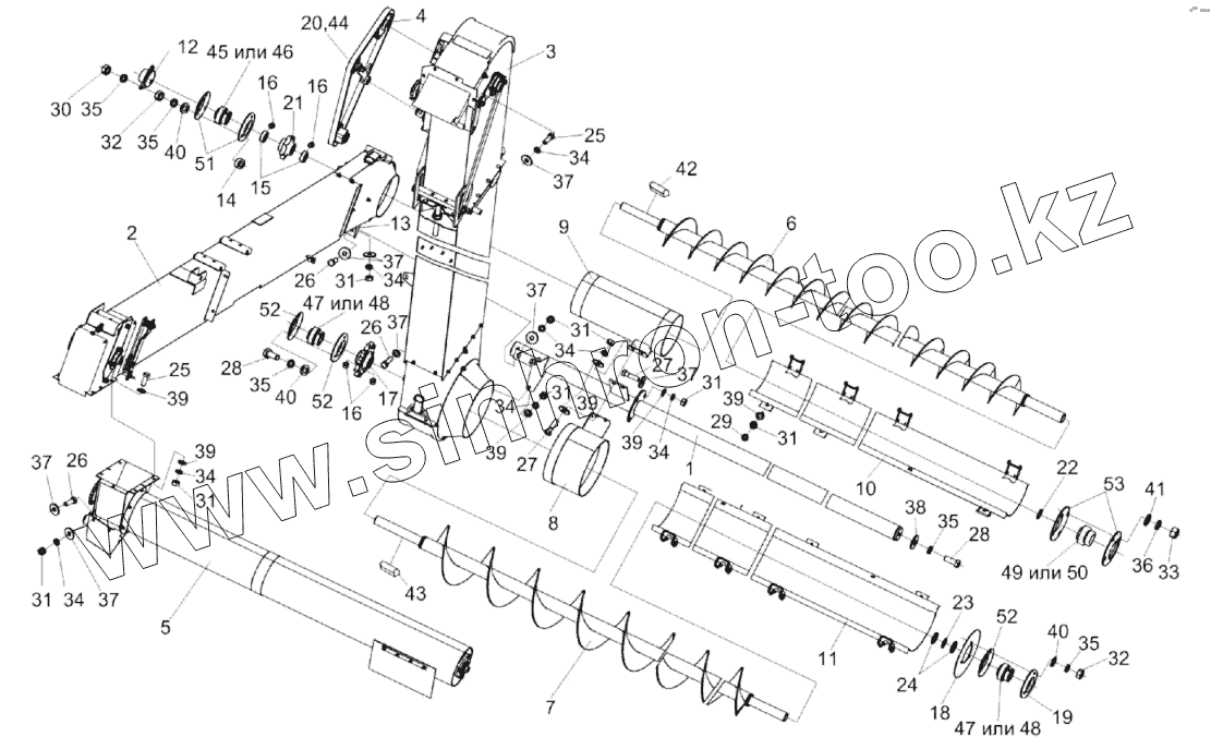 Каталог запасных частей к технике: Гомсельмаш КЗС-2124КР. Установка элеваторов и шнеков КЗК-2124-0207000