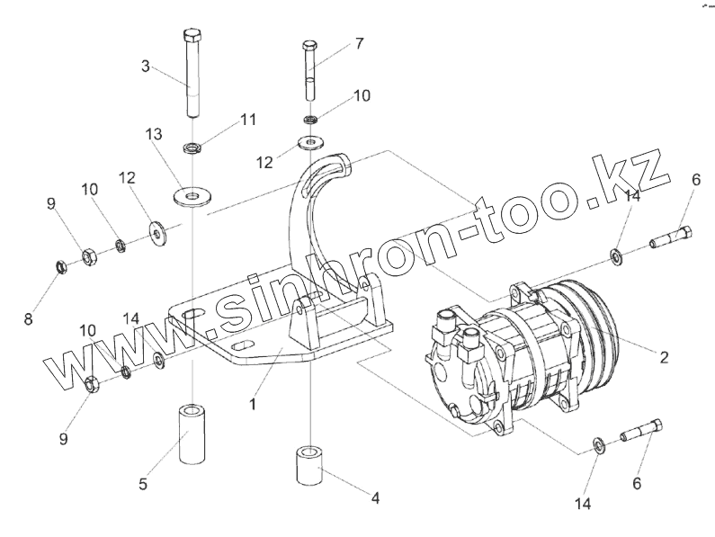 Каталог запасных частей к технике: Гомсельмаш КЗС-2124КР. Установка компрессора КЗК-16-1-0113030