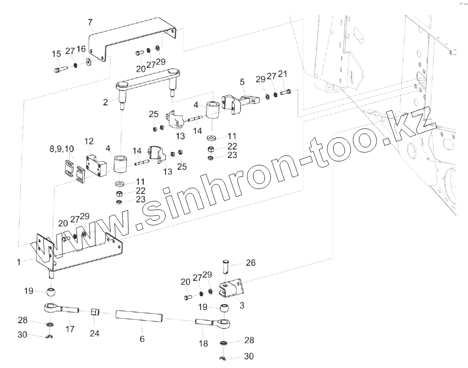 Каталог запасных частей к технике: Гомсельмаш КЗС-2124КР. Установка механизма удерживания КЗК-16-1-0202210