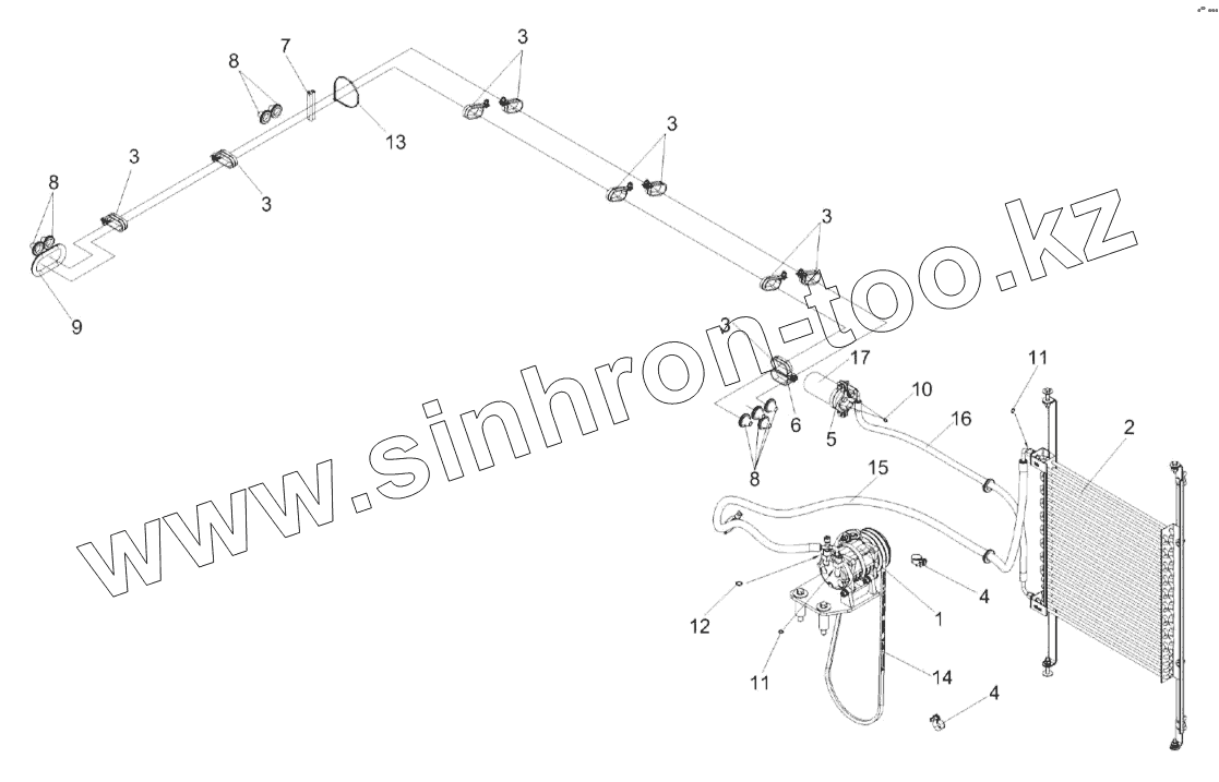 Каталог запасных частей к технике: Гомсельмаш КЗС-2124КР. Установка оборудования кондиционера КЗК-16-1-0113010