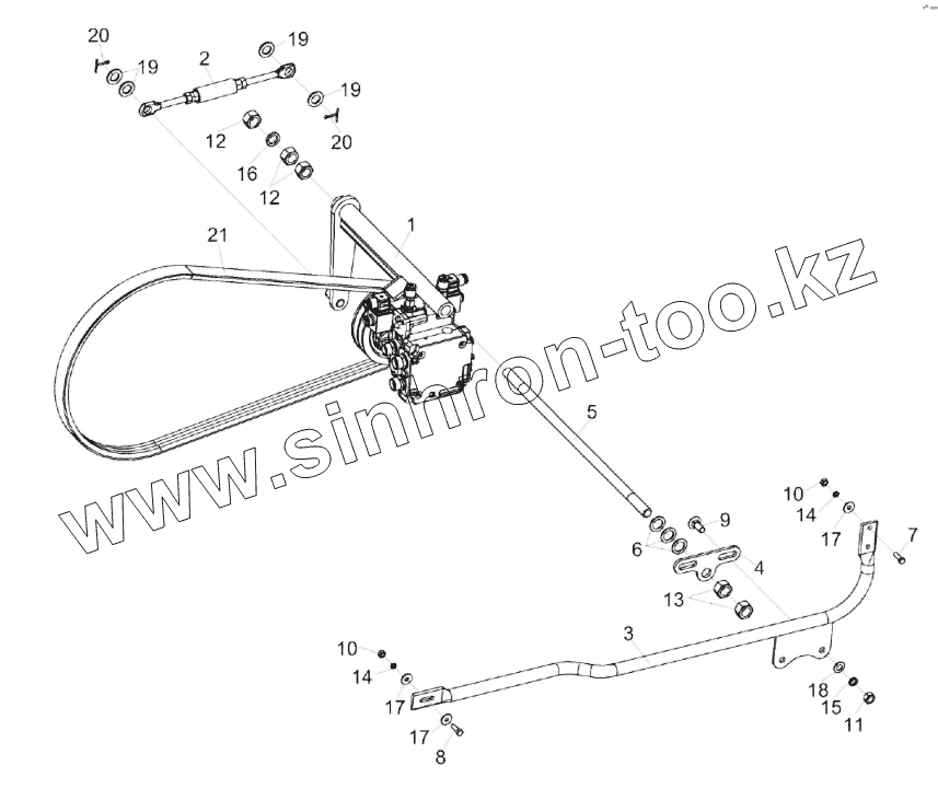 Каталог запасных частей к технике: Гомсельмаш КЗС-2124КР. Установка привода гидронасоса мотовила КЗК-14-0127000Б