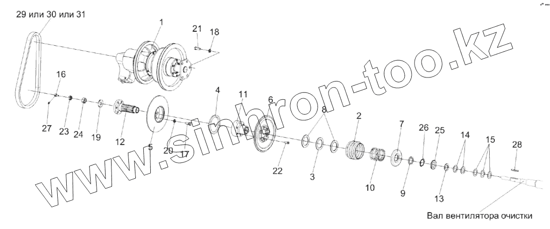 Каталог запасных частей к технике: Гомсельмаш КЗС-2124КР. Установка привода вентилятора КЗК-1420-0202450