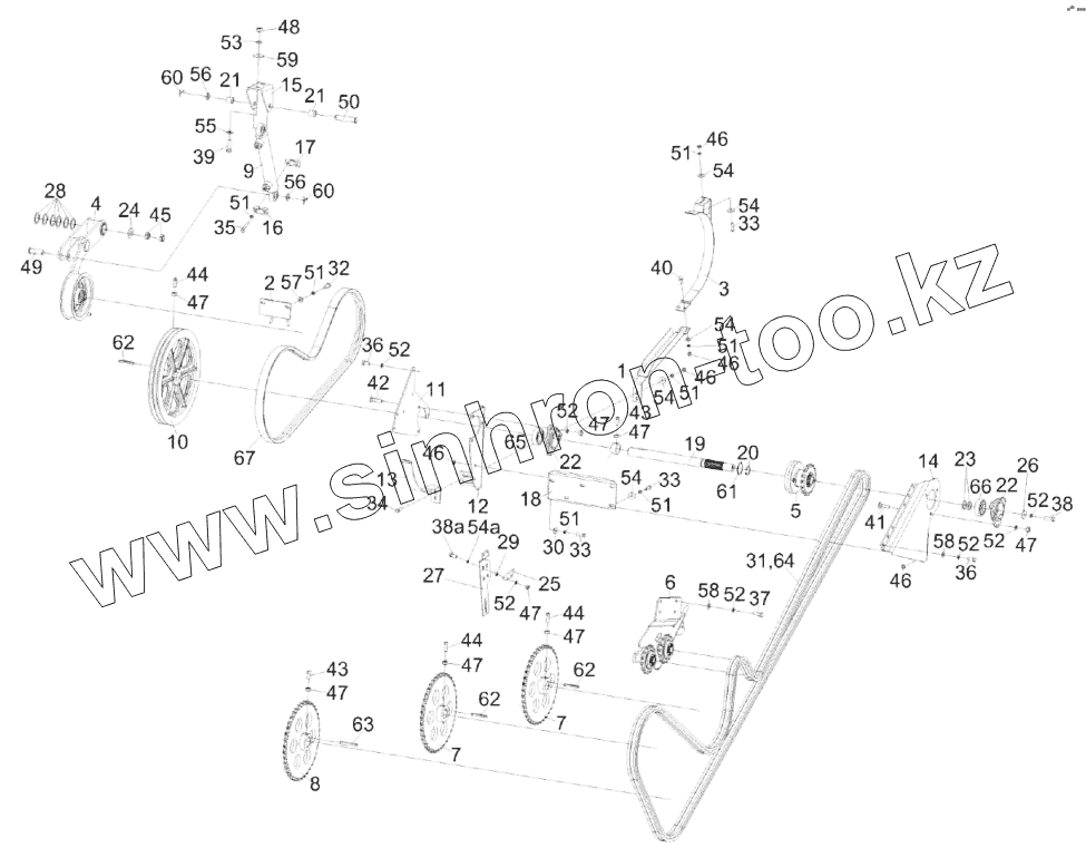 Каталог запасных частей к технике: Гомсельмаш КЗС-2124КР. Установка привода выгрузки КЗК-14-0221000А