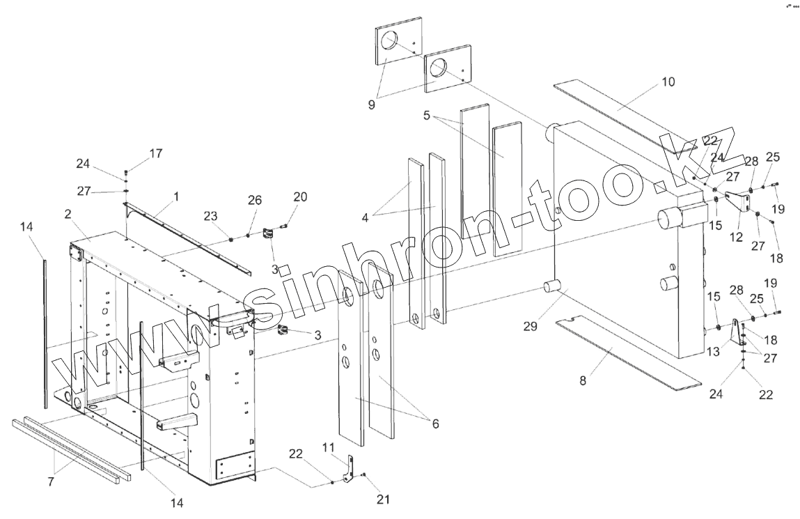 Каталог запасных частей к технике: Гомсельмаш КЗС-2124КР. Установка радиатора КЗК-2124-0106050