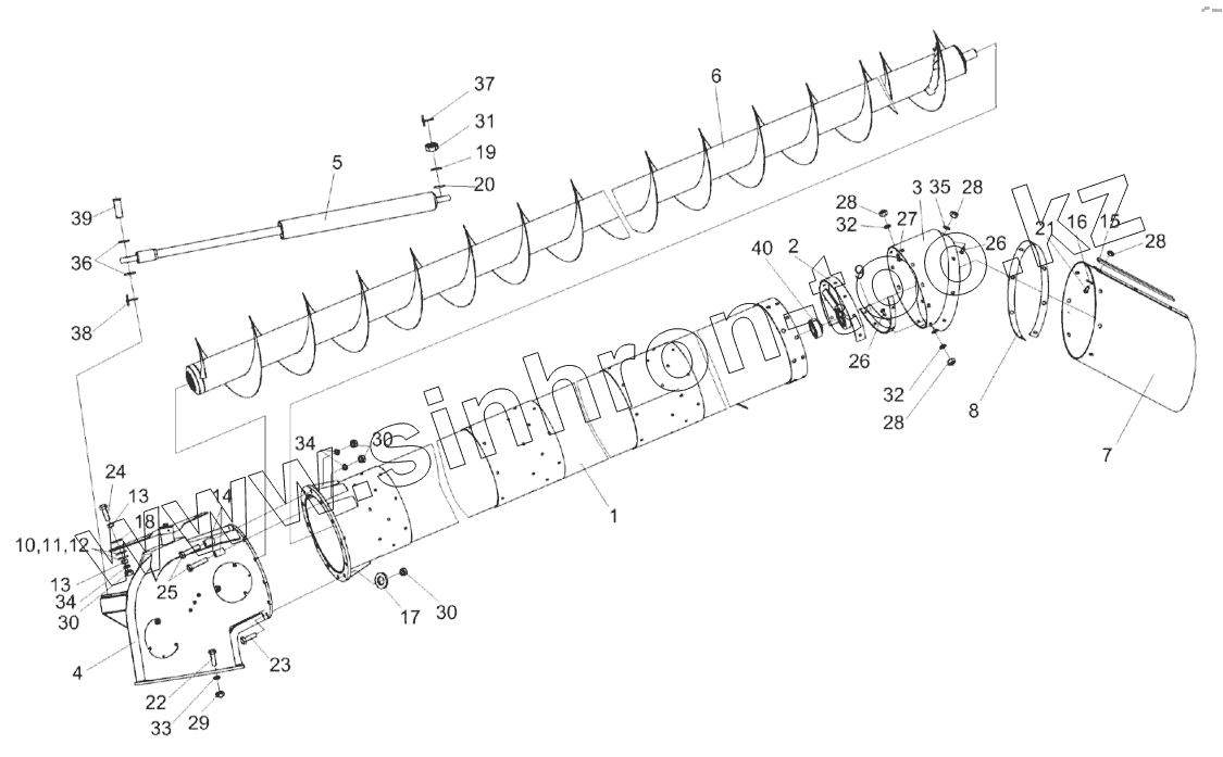 Каталог запасных частей к технике: Гомсельмаш КЗС-2124КР. Установка системы выгрузки КЗК-1420-0206000