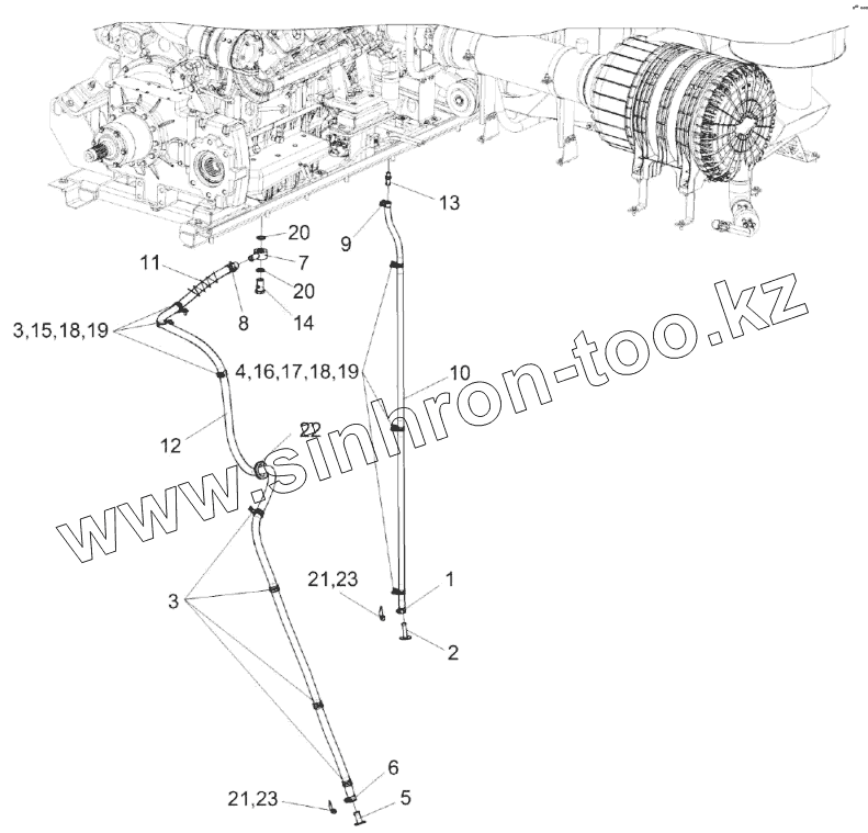 Каталог запасных частей к технике: Гомсельмаш КЗС-2124КР. Установка сливных рукавов КЗК-16-1-0106500