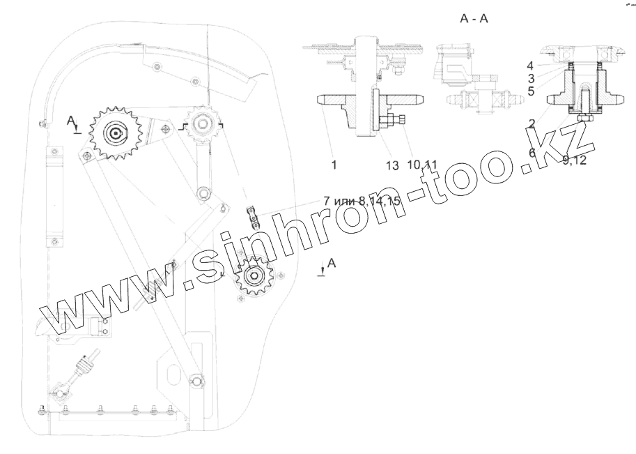 Каталог запасных частей к технике: Гомсельмаш КЗС-2124КР. Установка цепной передачи КЗК-2124-0214500