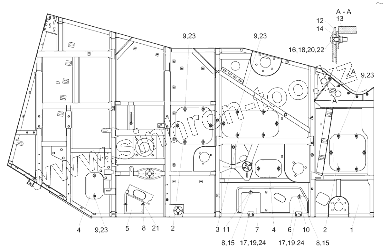 Каталог запасных частей к технике: Гомсельмаш КЗС-3221КР ПАЛЕССЕ GH800. Боковина правая КЗК-3219-0202260
