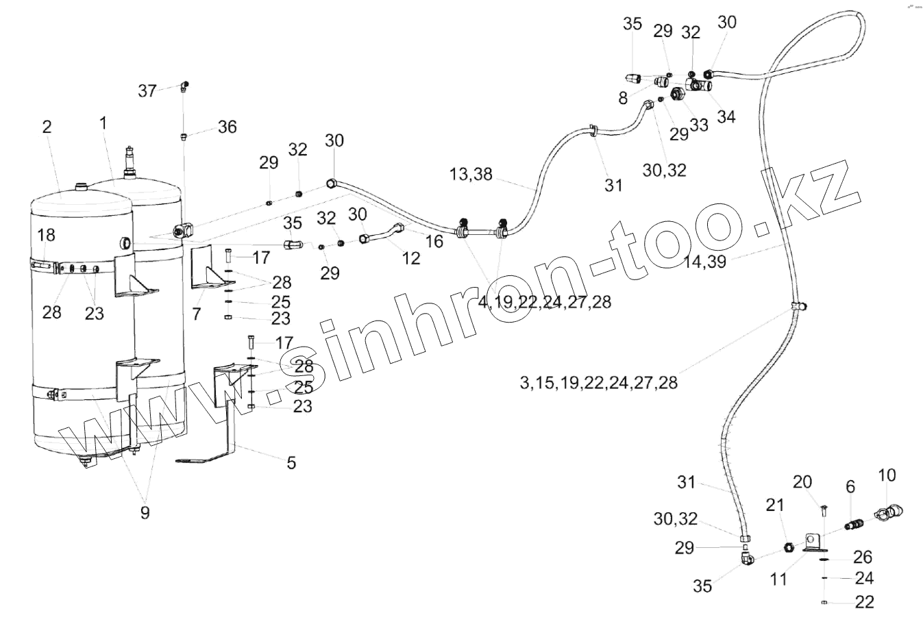 Пневмосистема КЗК-3321-2-0800000