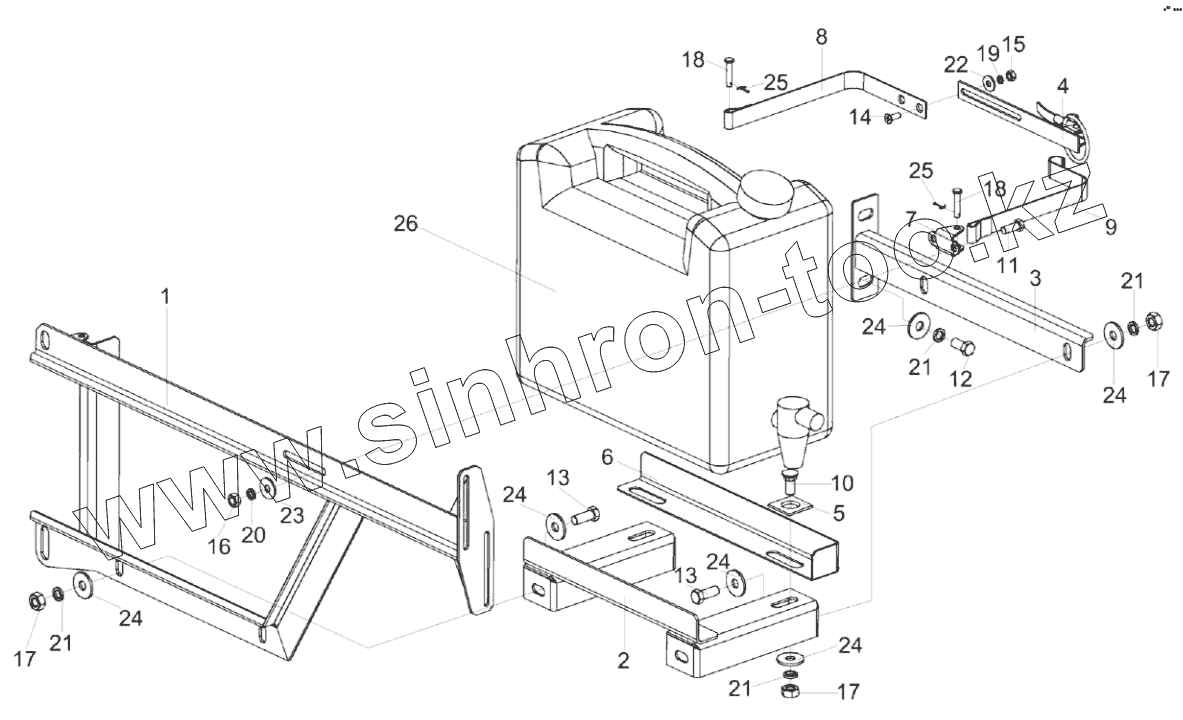 Каталог запасных частей к технике: Гомсельмаш КЗС-3221КР ПАЛЕССЕ GH800. Установка канистры КЗК-3219-0100620