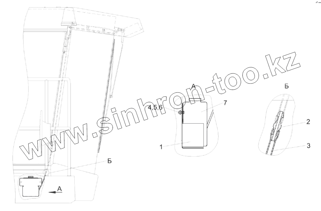 Каталог запасных частей к технике: Гомсельмаш КЗС-3221КР ПАЛЕССЕ GH800. Установка стеклоомывателя КЗК-12-0120460