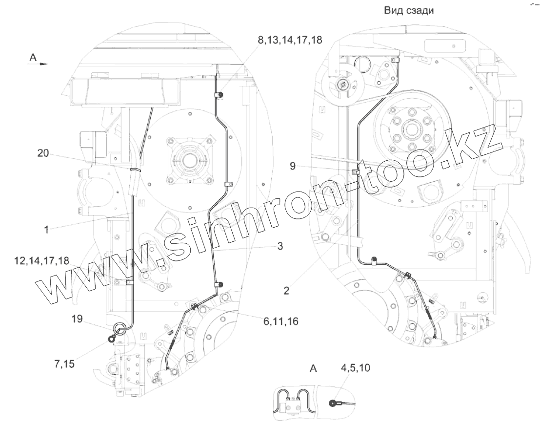 Каталог запасных частей к технике: Гомсельмаш КЗС-3221КР ПАЛЕССЕ GH800. Установка трубопроводов УКЗ-01-0263000