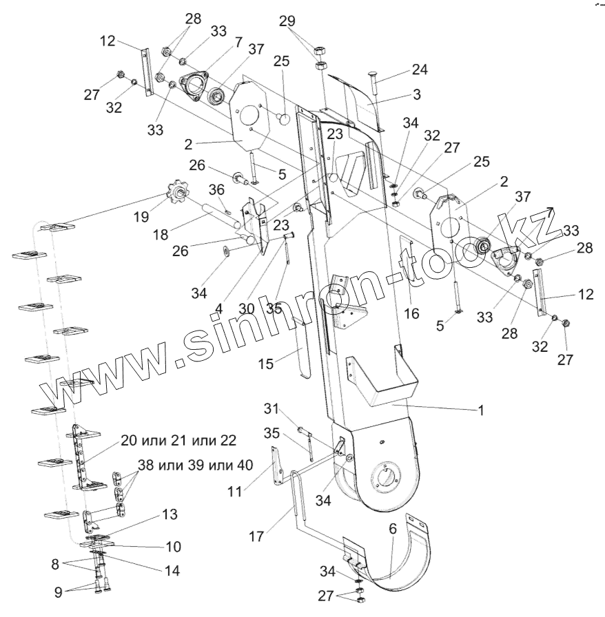 Каталог запасных частей к технике: Гомсельмаш КЗС-575. Элеватор колосовой КЗК 0208000А-02