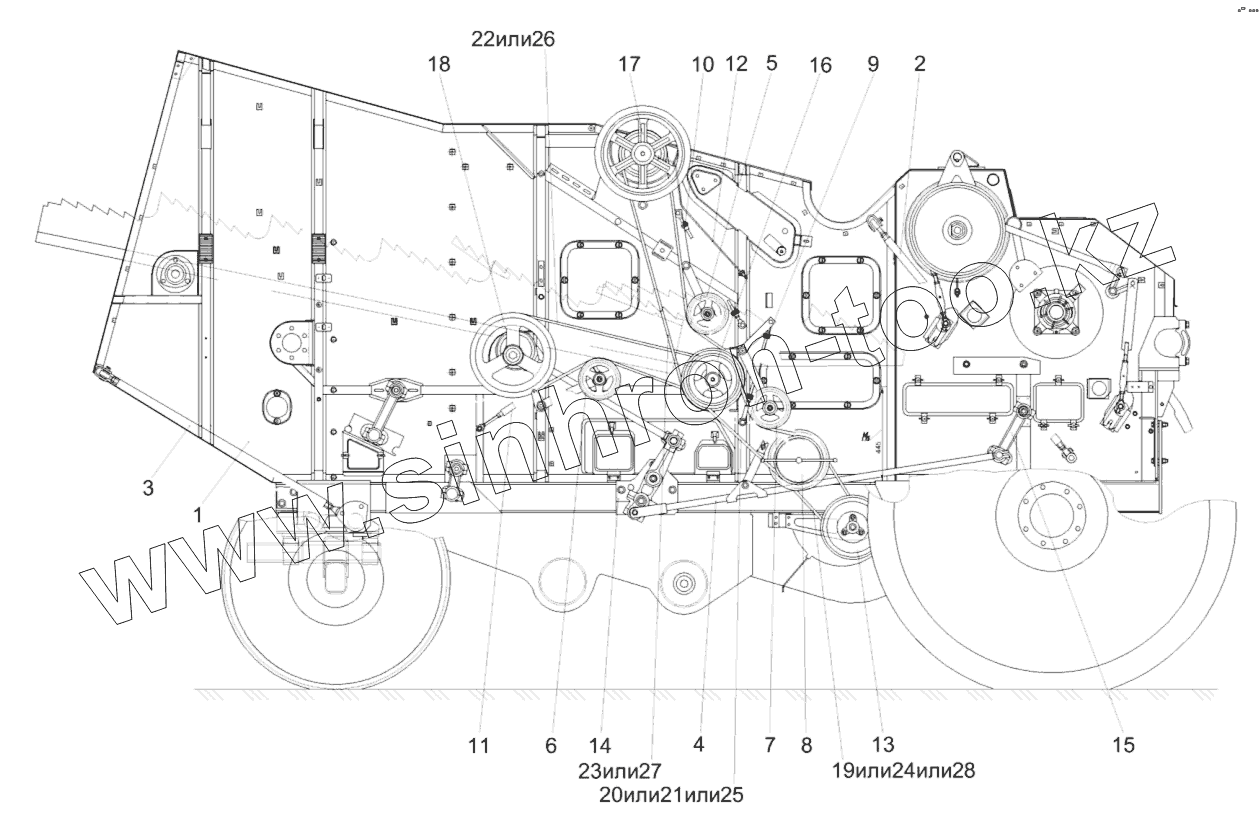 Каталог запасных частей к технике: Гомсельмаш КЗС-575. Очистка КЗК-5-4-0202000 (вид справа)