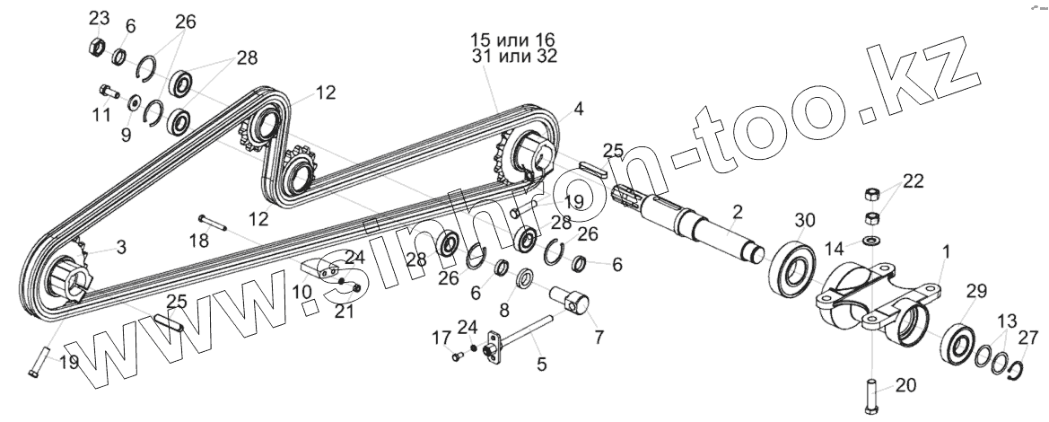 Каталог запасных частей к технике: Гомсельмаш КЗС-575. Привод жатки КЗК-5-1800900