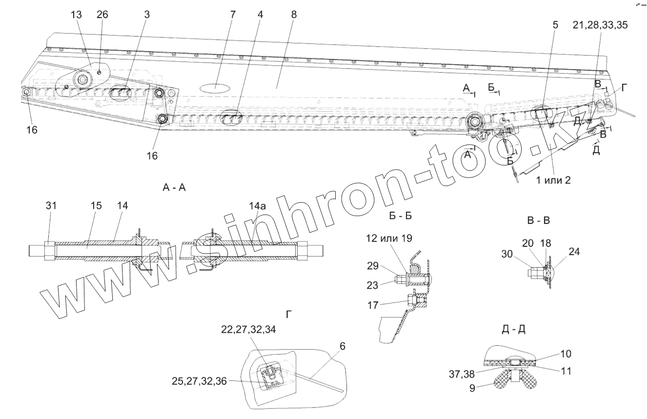 Каталог запасных частей к технике: Гомсельмаш КЗС-575. Стан решетный верхний КЗК 0260000Б-01