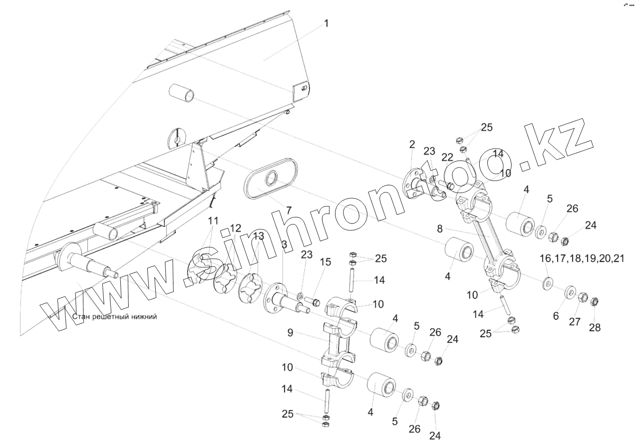Каталог запасных частей к технике: Гомсельмаш КЗС-575. Установка привода стана решетного верхнего КЗК 0260000Б-01