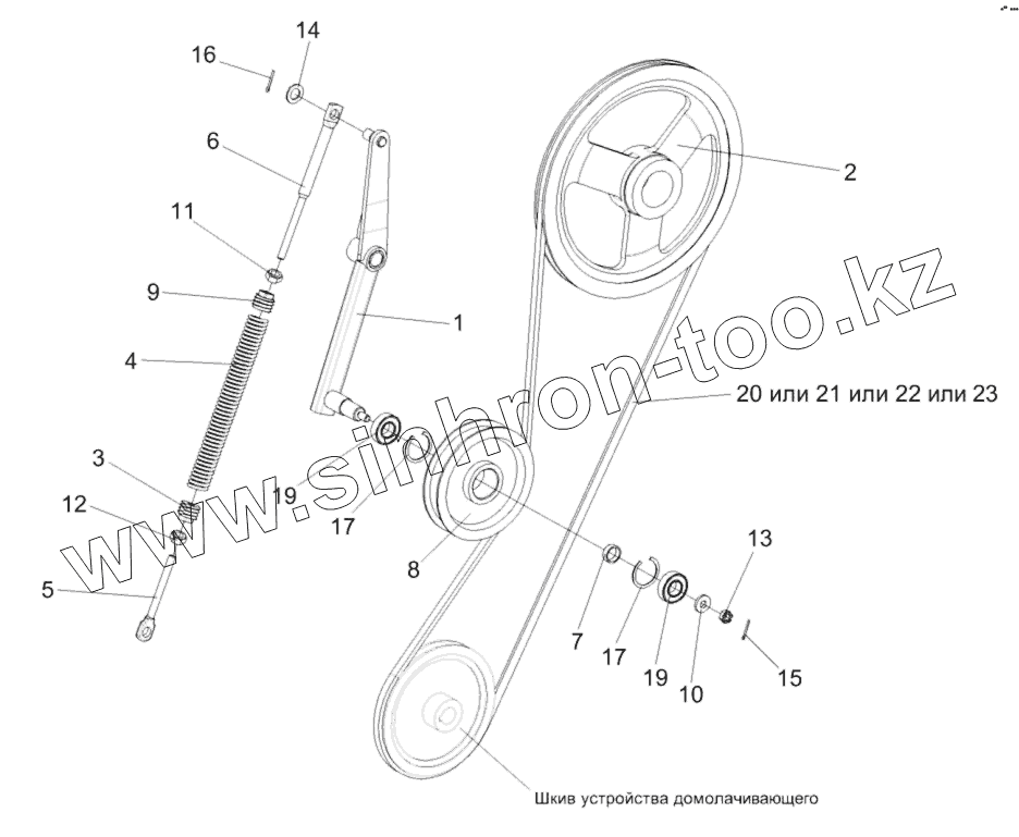 Каталог запасных частей к технике: Гомсельмаш КЗС-575. Установка привода устройства домолачивающего