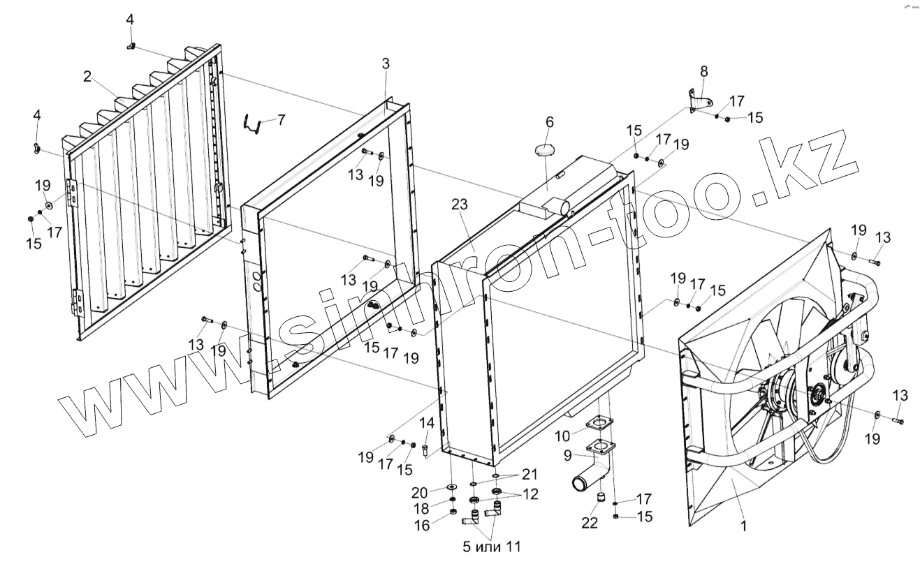 Каталог запасных частей к технике: Гомсельмаш КЗС-575. Установка радиатора КЗК-5-4-0106040